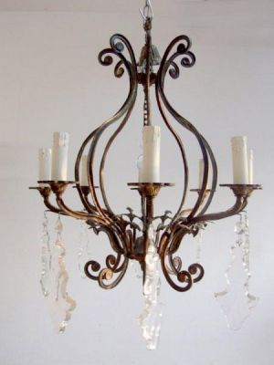 Vintage 1910 S Torino Bronze Chandelier With Crystals 11 69.